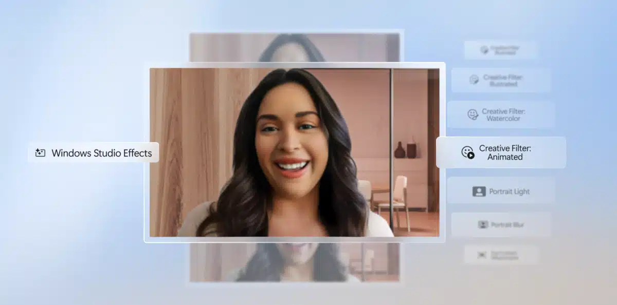 Diese KI-Funktion peppt Webkonferenzen auf, indem sich die Benutzer vorteilhafter präsentieren können. Unter anderem kommen Beleuchtungseffekte, Filter und verwischte Hintergründe zum Einsatz.