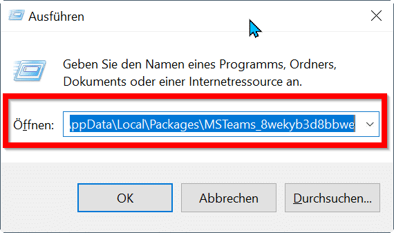 2. Teams-Cache-Ordner öffnen über Windows-Ausführen-Dialog