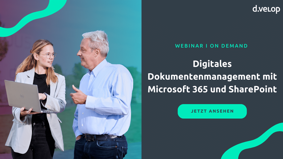 Microsoft 365 stellt umfangreiche Basisfunktionen für geschäftliches Dokumentenmanagement bereit. Doch sobald es um die Einbindung in typische Geschäftsprozesse geht, fehlen Übersichtlichkeit und Strukturen. Wie Sie SharePoint mit DMS-Funktionen und Aktenmanagement „Business-fähig“ machen und in Ihre Prozesse einbinden, erfahren Sie im neuen DMS-Webinar von d.velop.