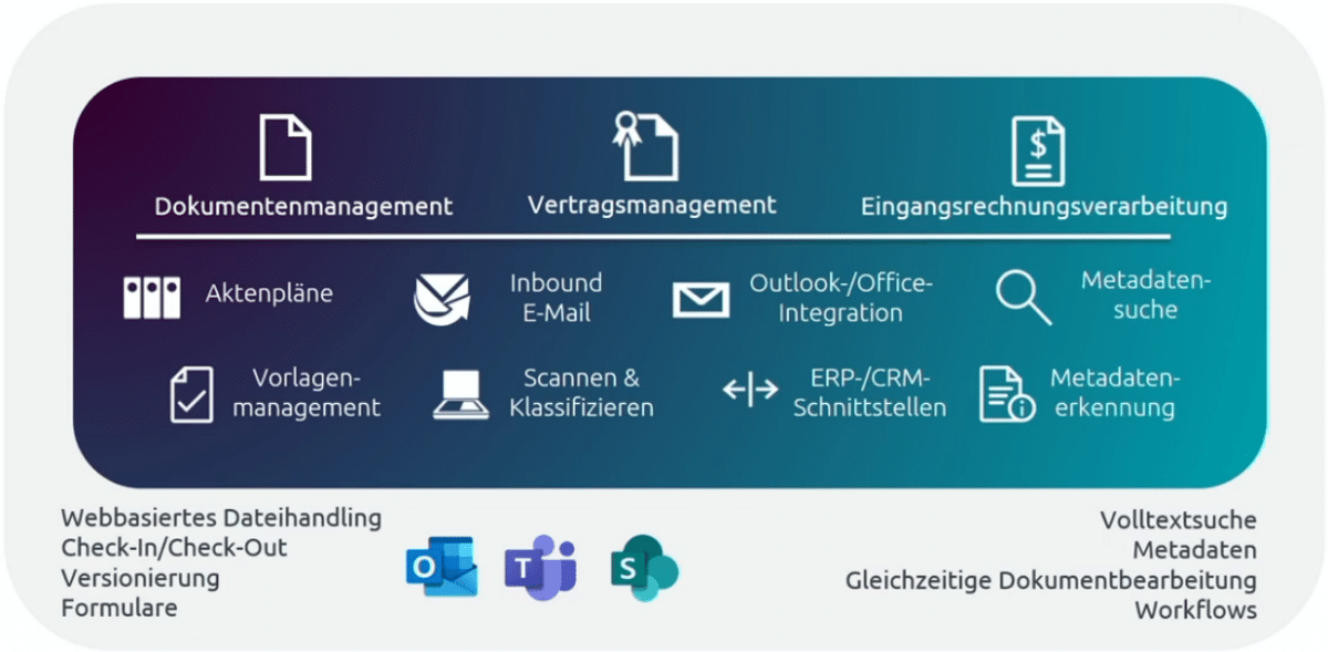 - DMS-Integration in Microsoft 365-Apps wie Outlook, Office und Teams