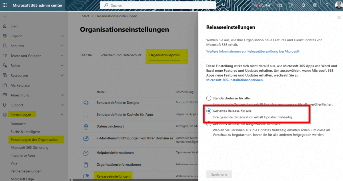 Aktuell steht die neue Mikrofon-Funktion nur den Teilnehmern der Beta-Programme Teams Public Preview oder Microsoft 365 Targeted Release zur Verfügung. Anmelden kann man sich an letzterem im Microsoft 365 Admin-Center unter Einstellungen, Einstellungen der Organisation, Organisationprofil und hier mit Releaseeinstellungen aktivieren.