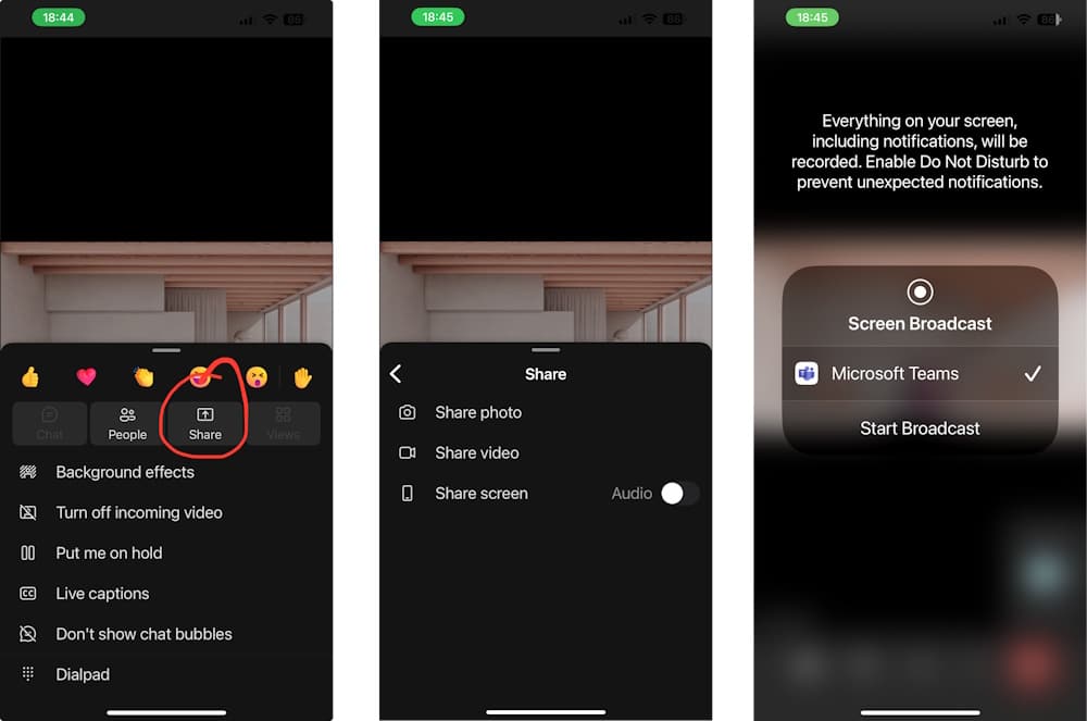 2. Teams-Bildschirm teilen mit dem Smartphone