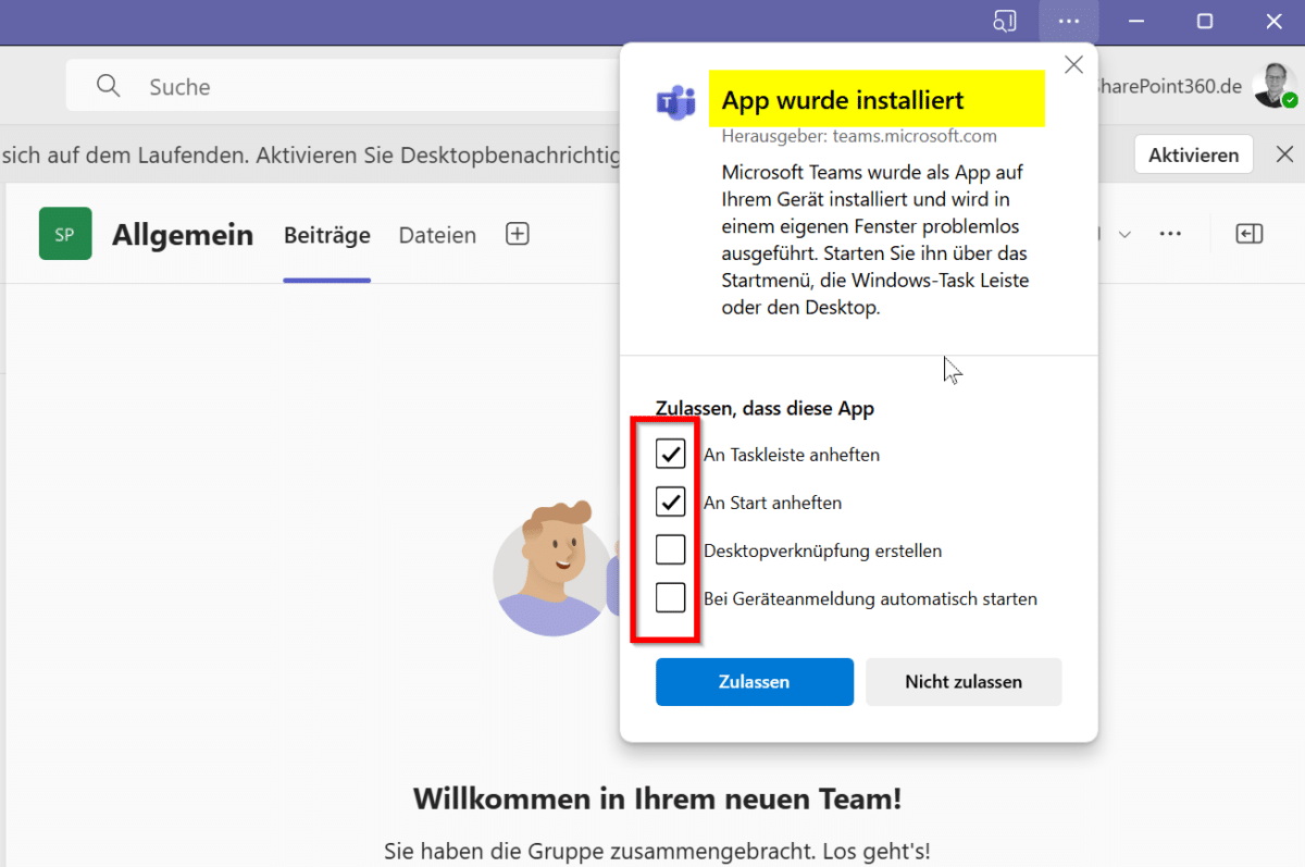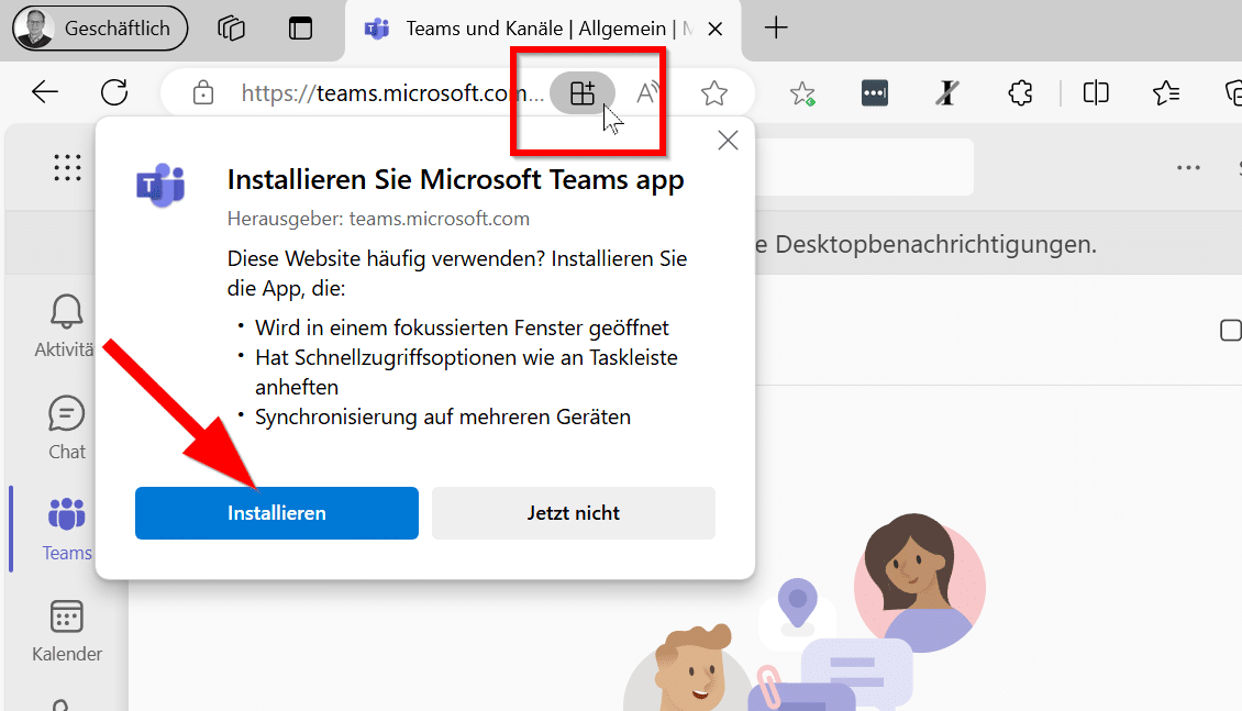 Und so installieren Sie die Teams PWA: