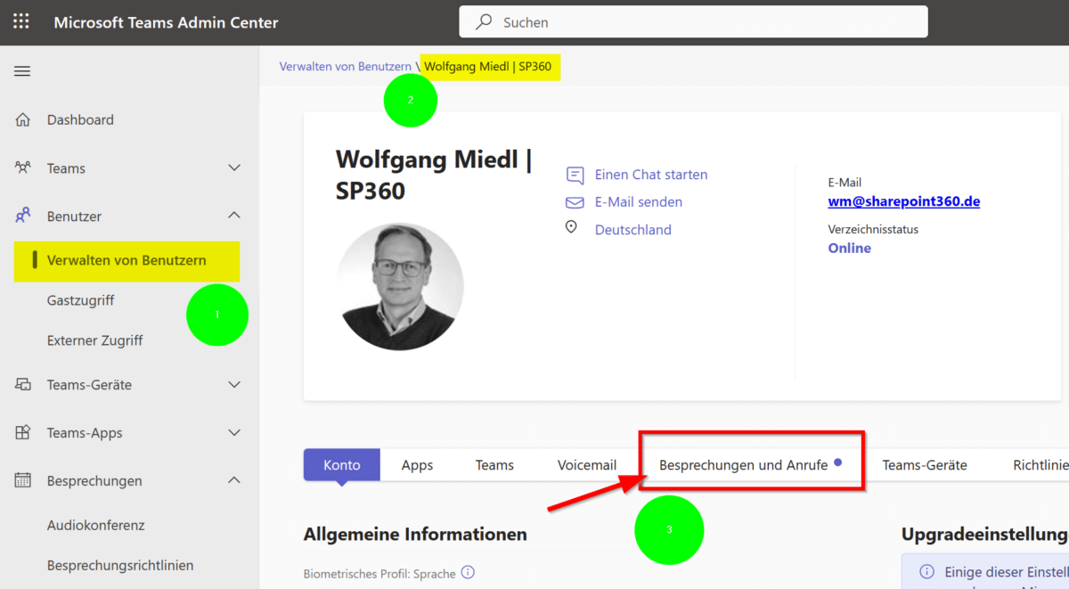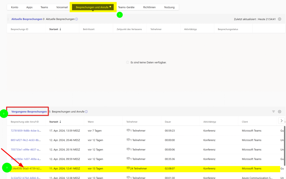 3. Anwesenheitsdaten im Teams Admin Center aufrufen
