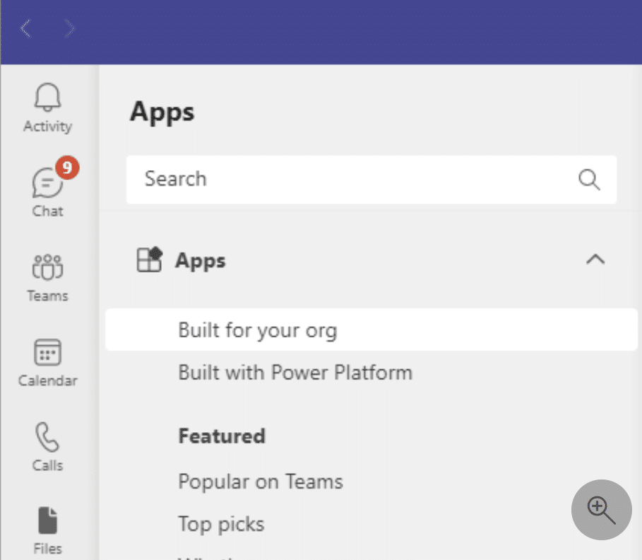 Sobald ein Administrator die Verwendung benutzerdefinierter Apps genehmigt hat, können Benutzer diese im Teams Store unter „Für Ihre Organisation erstellt“ im linken Navigationsbereich finden. Weitere Informationen finden Sie unter Verstehen und Verwalten von benutzerdefinierten Apps.