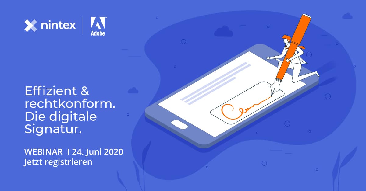 WEBINAR-Einladung: 'Mit digitalen Signaturen Dokumentenprozesse optimieren – mit Nintex & Adobe Sign' am 24.6.
